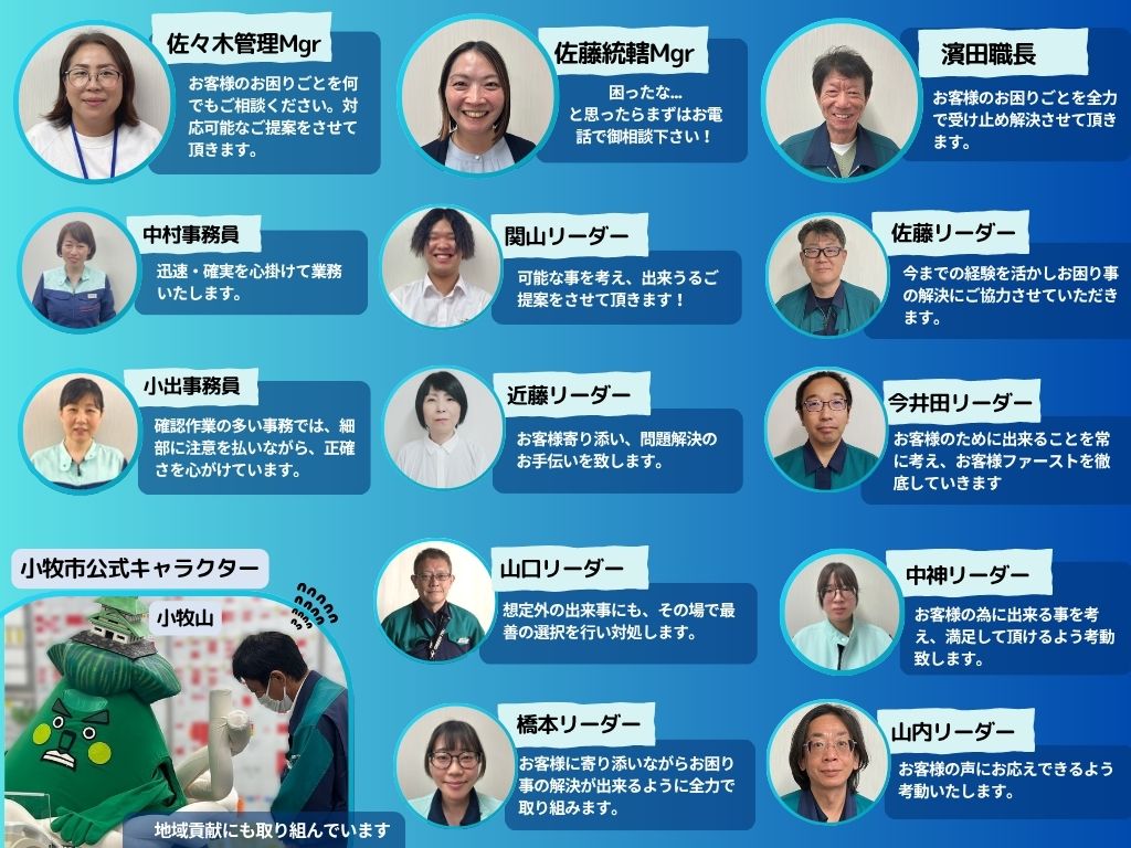 佐々木管理Mgr : お客様のお困りごとを何でもご相談ください。対応可能なご提案をさせて頂きます。